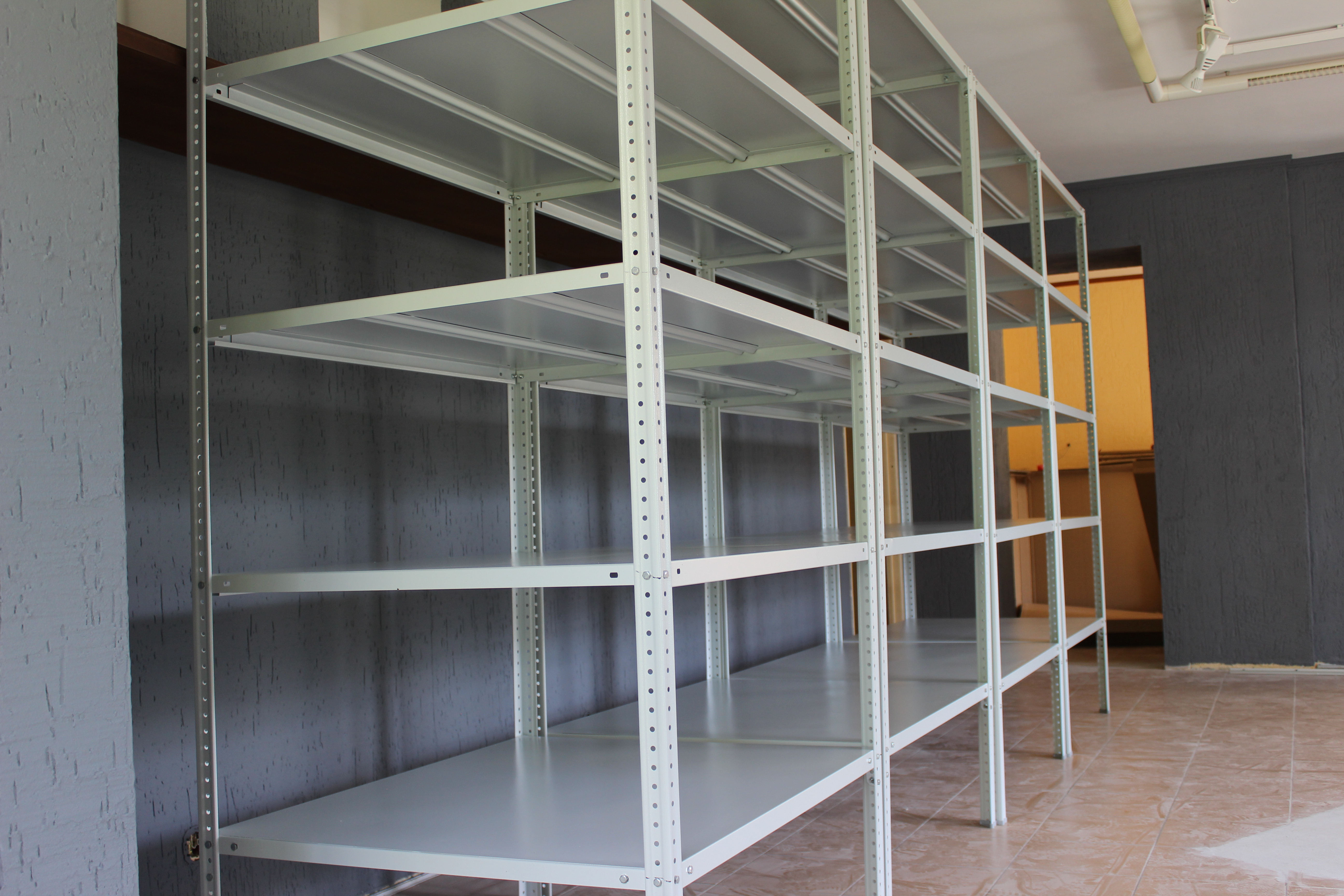 Для хранения документов и прочих бумажных грузов идеально подойдут металлические архивные стеллажи. Конструкции такого типа часто применяются в офисных помещениях, поэтому можно использовать специальные накладные панели или покрасить их в фирменные корпоративные цвета.
